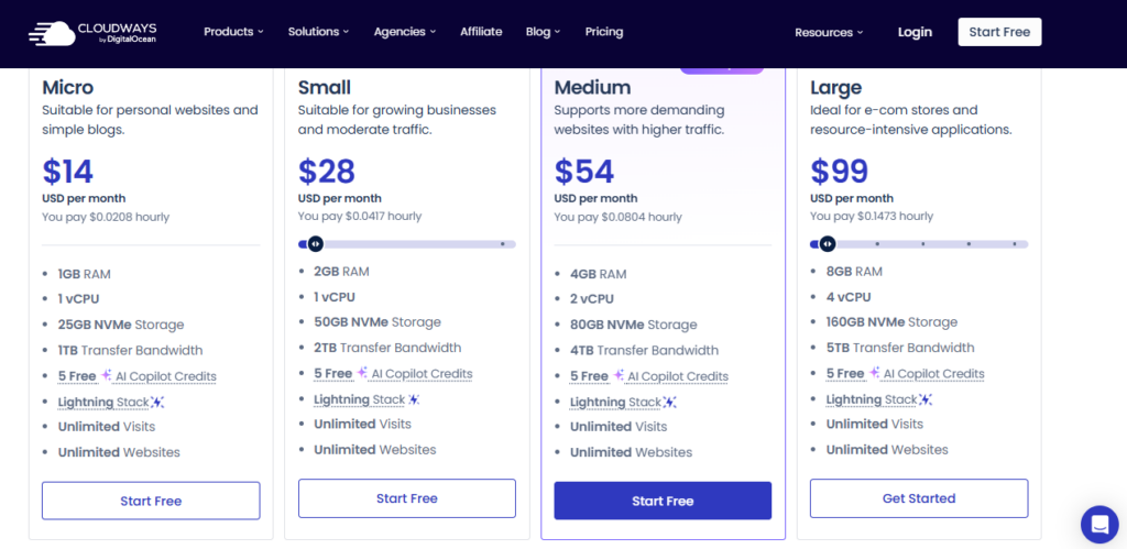 Cloudways pricing lets you pay for exactly what you use. You can start small and scale up later.